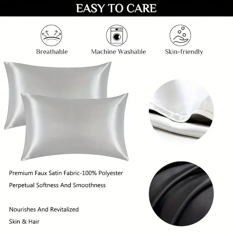 Product Name: 2 pieces of pure simulation silk satin pillowcase, comfortable pillowcase, pillowcase bed, throw single pillowcase