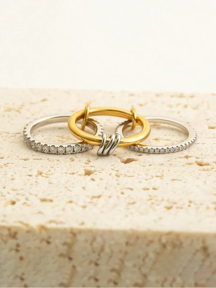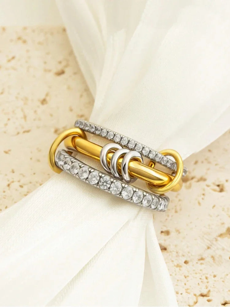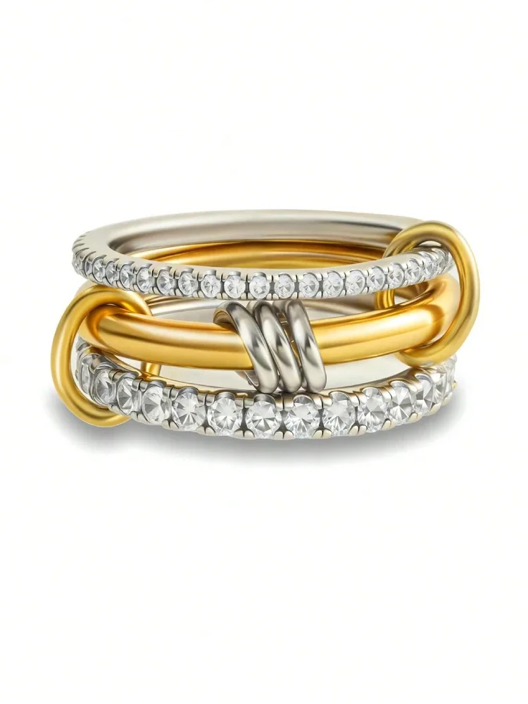 925 Sterling Silver Luxury Gorgeous Versatile Three Interlock Zircon Ring