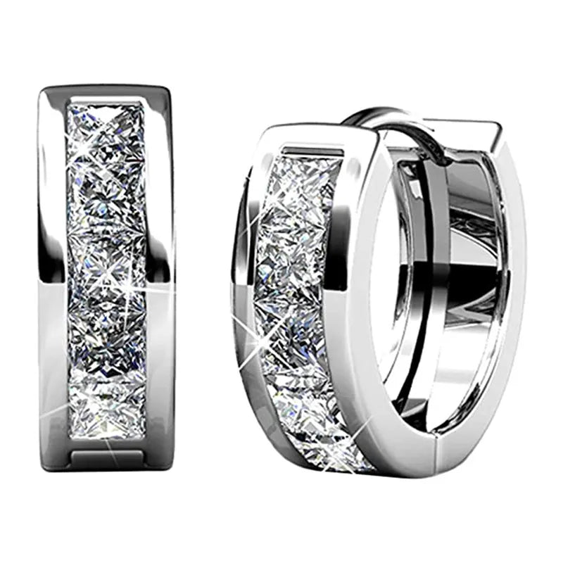 Huitan Trendy Hoop Earrings for Women Silver Color/Gold Color Sparkling Cubic Zirconia Circle Earrings Daily Elegant Accessories